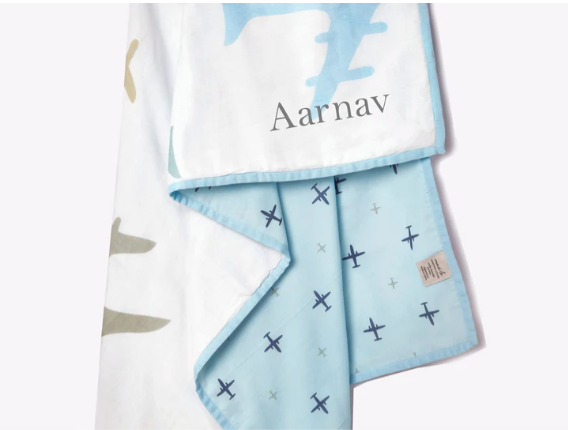 For a unique touch, add an embroidered name or monogram initials, ₹500 each. If embroidery is selected, it will be on the Dohar Blanket and/or Playmat. Please note personalisation extends the standard shipping and fulfilment time by 3 business days and personalised items are non-refundable.