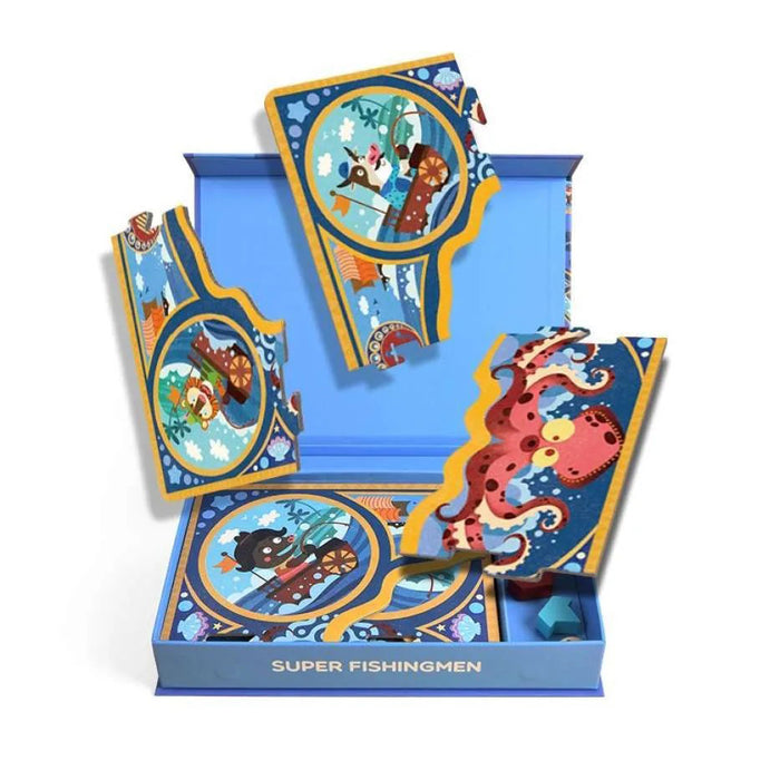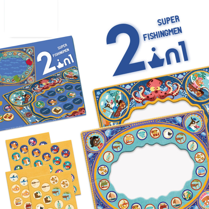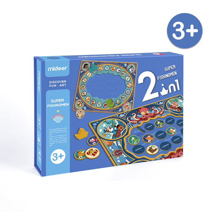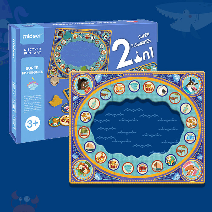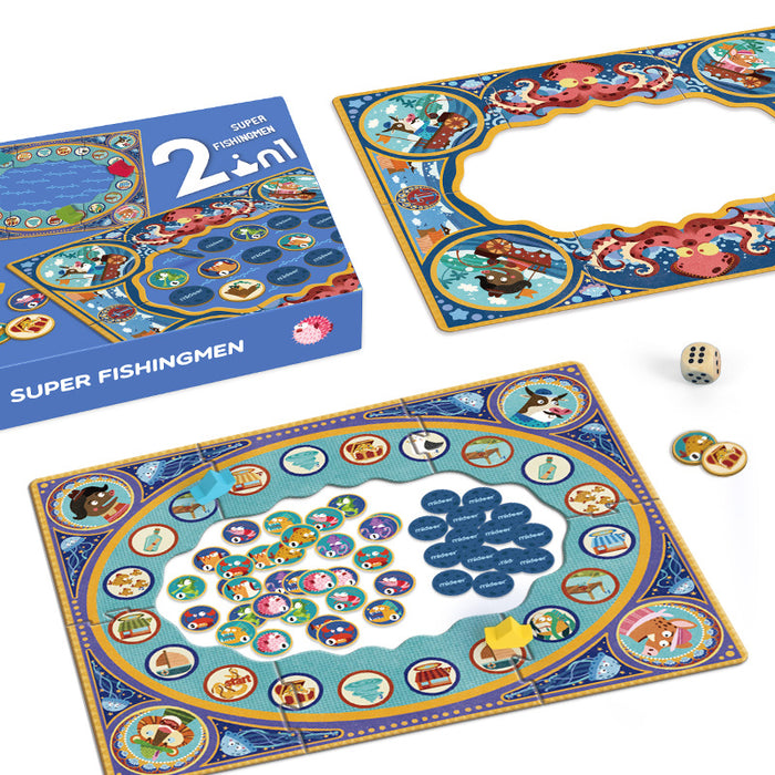This board game contains two fun games to play, Super Fisherman and Fishing Chess, which help to develop memory and strategic competence. It includes 1 double-sided game board, 32 marine animal cards, 24 featured cards, 4 ship blocks, 1 dice, and 1 game manual.