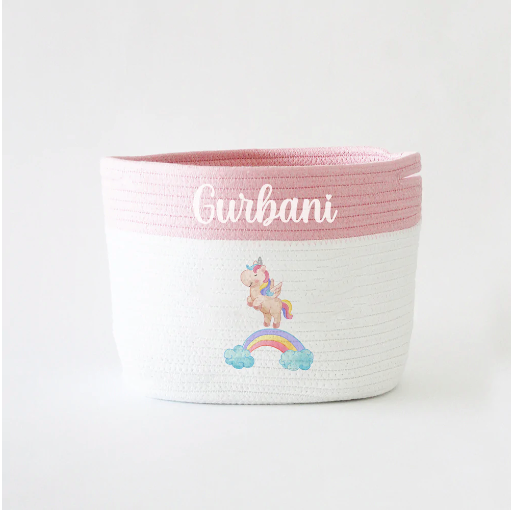 Personalized Storage Basket - Small - Unicorn Theme - Pink