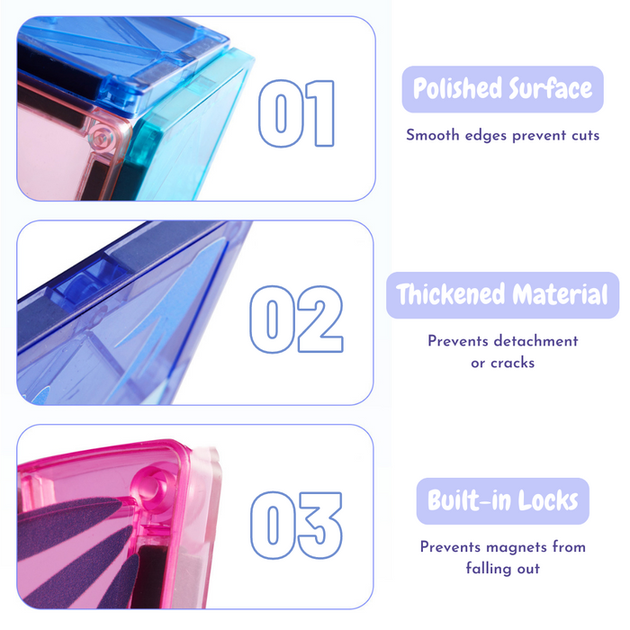 التعلم عن طريق اللعب – ليس من السابق لأوانه البدء في تطوير إبداع الأطفال. يمكن للأطفال اكتساب إحساس قوي بالألوان والأشكال الهندسية بما في ذلك أعداد أرقام أشكال 3D والأقطاب المغناطيسية والتصميم المعماري في سن مبكرة.