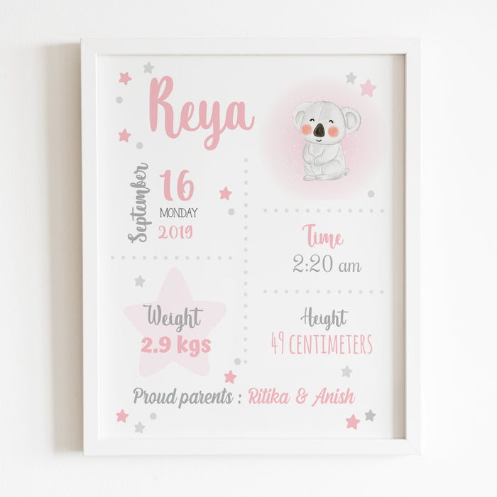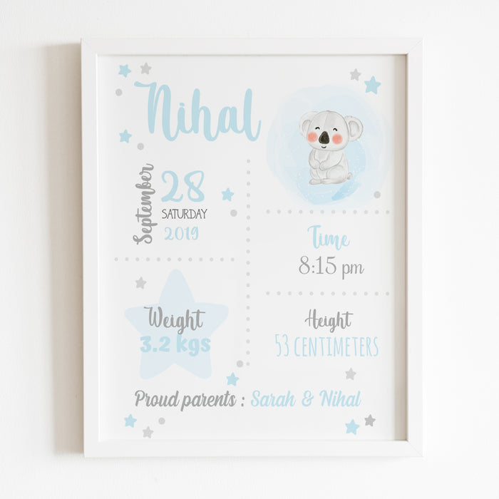 - لتخصيص الإطار، يرجى تقديم كل هذه التفاصيل في المساحة المتوفرة: الاسم الكامل، تاريخ الميلاد، الوقت (صباحا/مساء)، الطول بالسنتيمتر، الوزن بالكيلوجرام أو الرطل وأسماء الوالدين