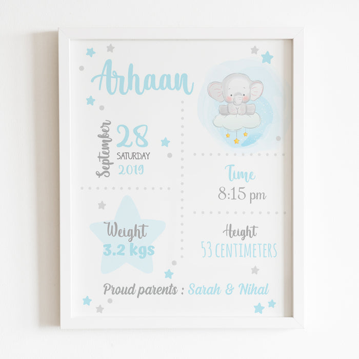 - لتخصيص الإطار، يرجى تقديم كل هذه التفاصيل في المساحة المتوفرة: الاسم الكامل، تاريخ الميلاد، الوقت (صباحا/مساء)، الطول بالسنتيمتر، الوزن بالكيلوجرام أو الرطل وأسماء الوالدين