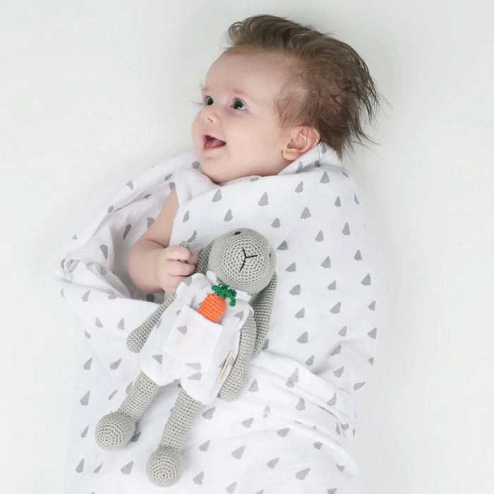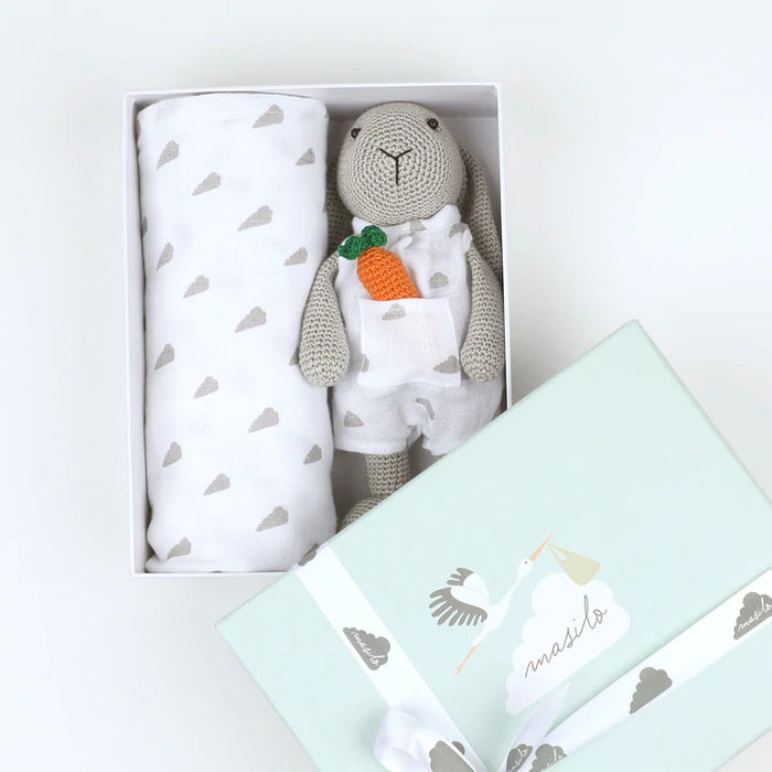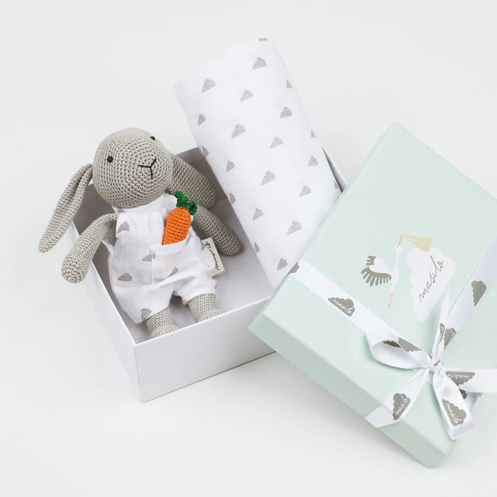 Organic Swaddle & Hand-Knit Bunny Gift Box