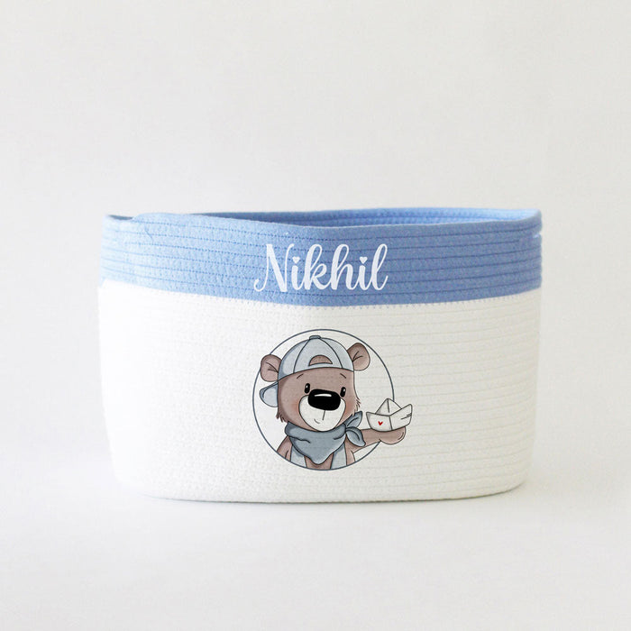 Personalized Storage Basket - Medium - Teddy Theme - Blue