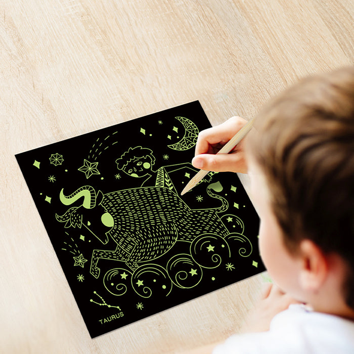 Try a different painting experience without the use of paints and brushes. Just scrape the black layer of each card and let the beautiful and colorful patterns gradually appear. The Mideer Scratch Art Kit is a great set to develop creative thinking, aesthetic appreciation, and fine motor skills. Unleash the artist in your child with our Scratch Art Cards.