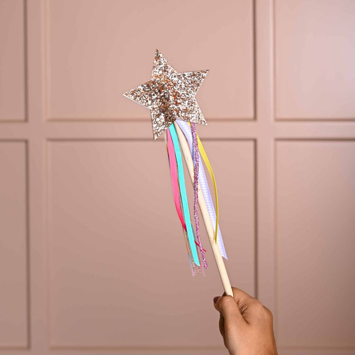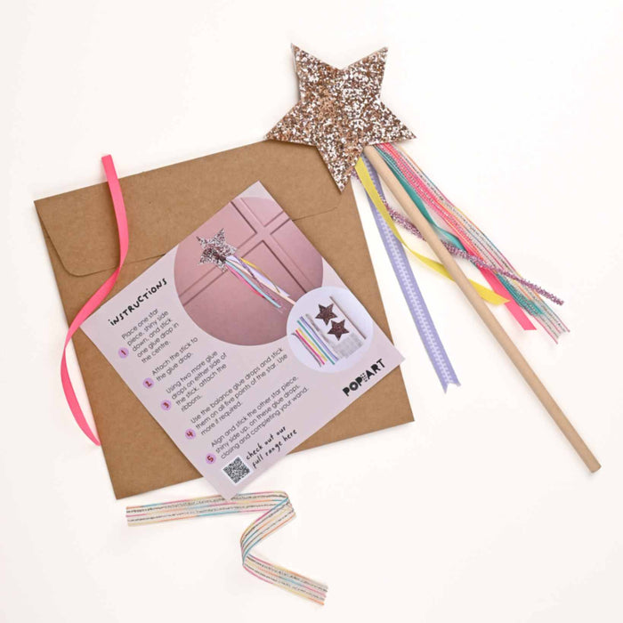 This set includes: 1 stick, 6 ribbons, 2 star cutouts and 12 gluedrops