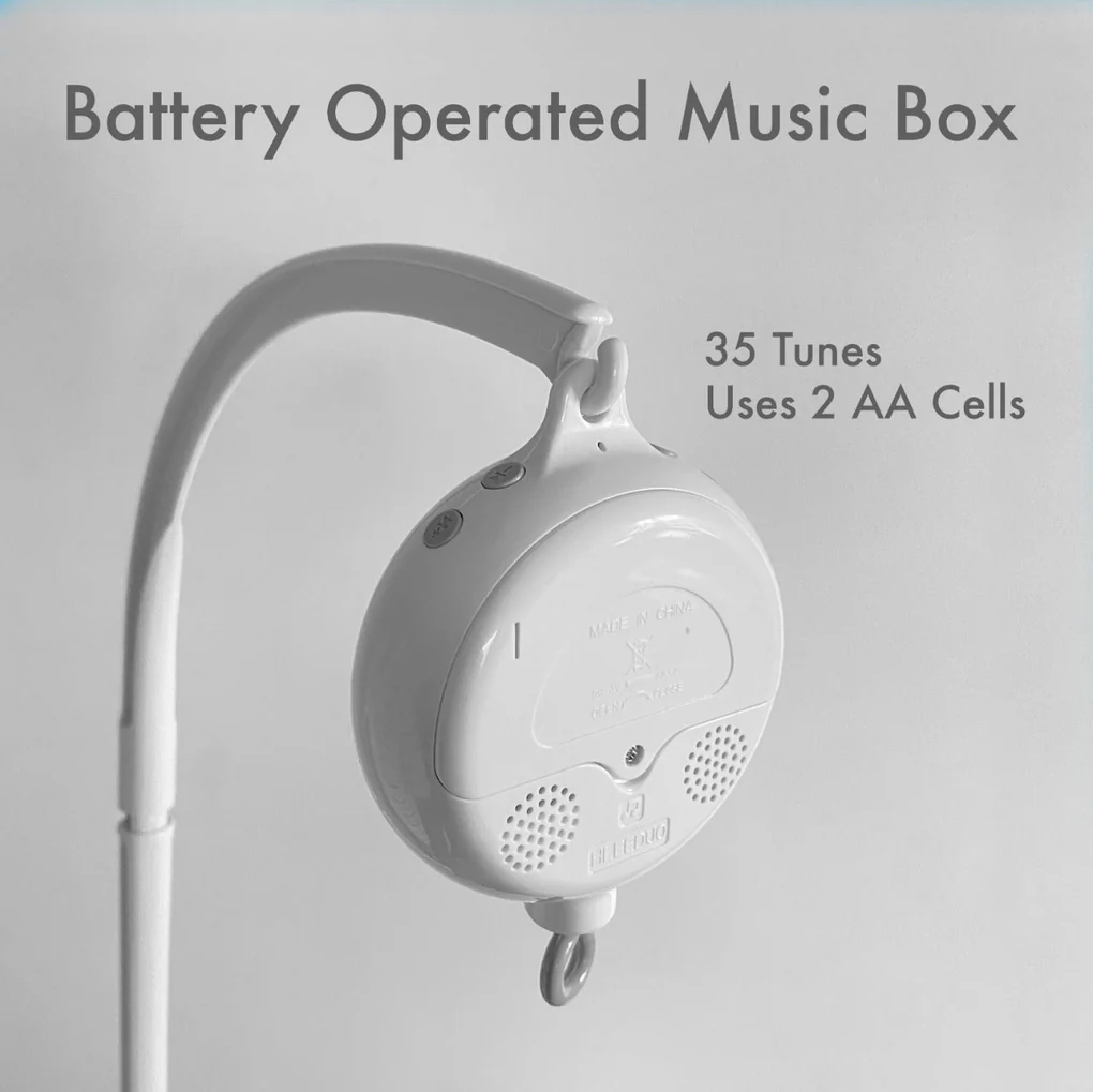 The manual music box plays the Brahms Lullaby tune and the battery operated music box has 35 tunes.