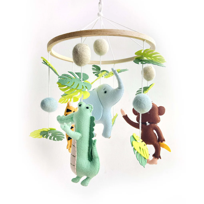 Transform your little one's crib into a jungle paradise with this bright hued baby crib mobile hanging. Completely handmade with love makes each piece unique.