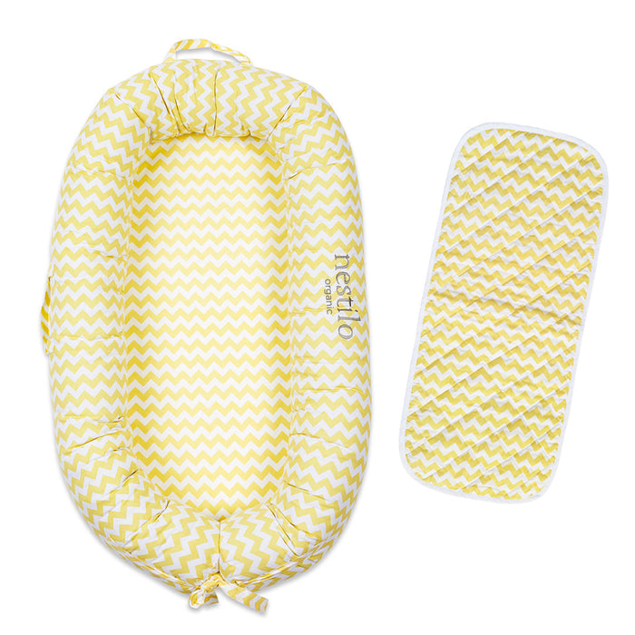 Nestilo®, meaning Nest of Joy. An organic, breathable and soft portable bed for your bub to rest anytime, anywhere. The new Nestilo® models (April 2022 onwards) are made out of 100% organic materials both inside and out to ensure a healthy environment for your baby, free from chemicals and toxins, and 100% filled with love.