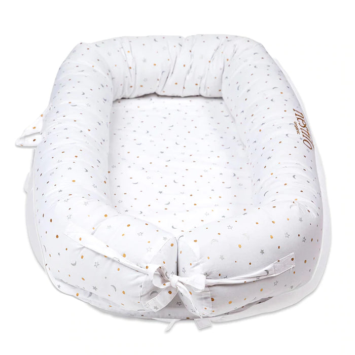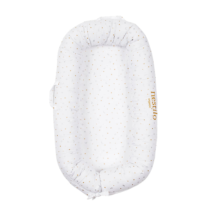 Nestilo®, meaning Nest of Joy. An organic, breathable and soft portable bed for your bub to rest anytime, anywhere. The new Nestilo® models (April 2022 onwards) are made out of 100% organic materials both inside and out to ensure a healthy environment for your baby, free from chemicals and toxins, and 100% filled with love.