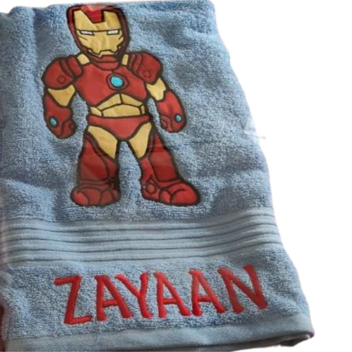 Light Blue Bath Towel- Iron Man - Medium Size Bath Towel is backordered and will ship as soon as it is back in stock.