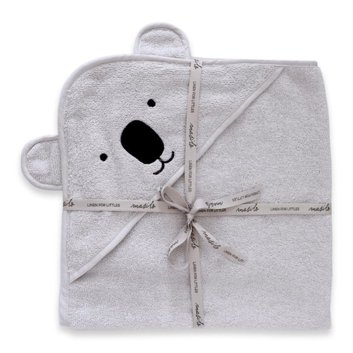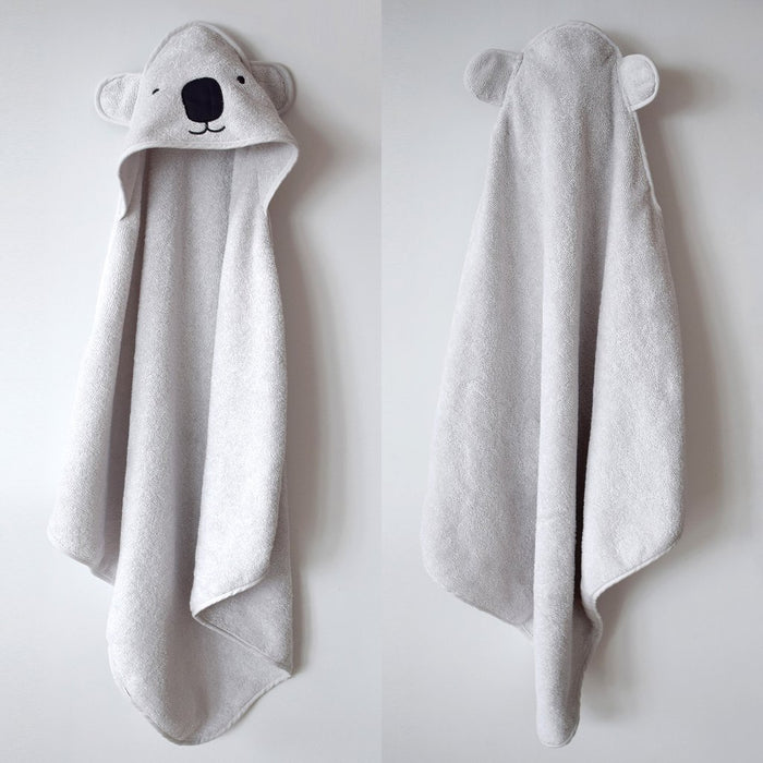 Splash into bath time with this plush and absorbent Koala Bear grey hooded towel. Featuring printed bamboo muslin on the outside and ultra-soft terry cloth on the inside, plus a hood for keeping your little one cozy!