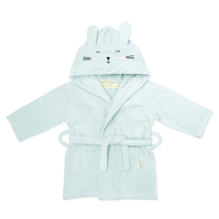 Perfect for wrapping your baby in straight after a bath or swim. Made of absorbent and fast drying pure towelling cotton, the robe features two pockets, a tie belt and a cute little animal applique on the hood.