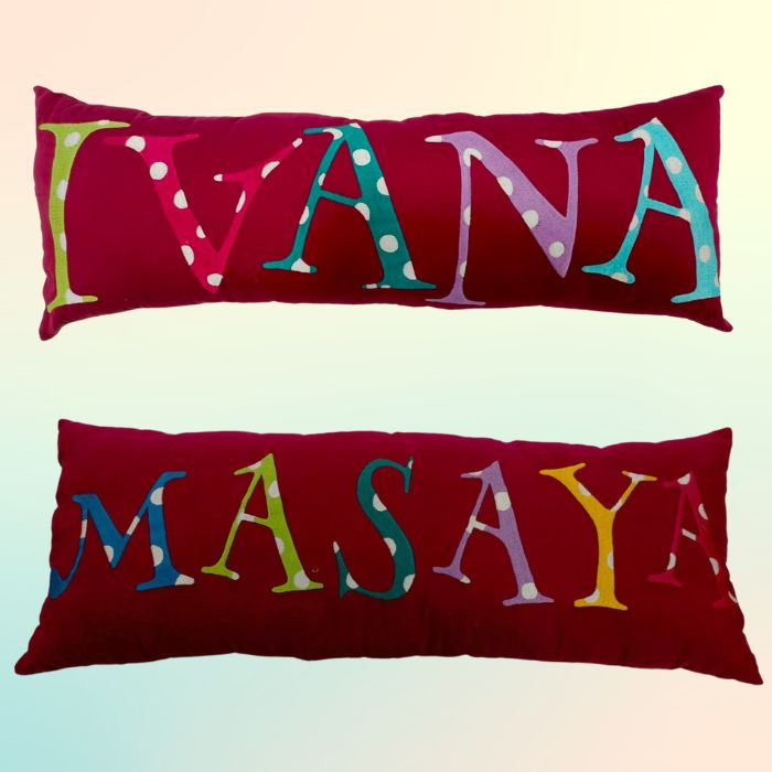 Plush, ultra-soft cuddle pillow with your little one's name embroidered on it. A personal space is really quite incomplete without one of these, and you can also double them as a bumper for the cot.