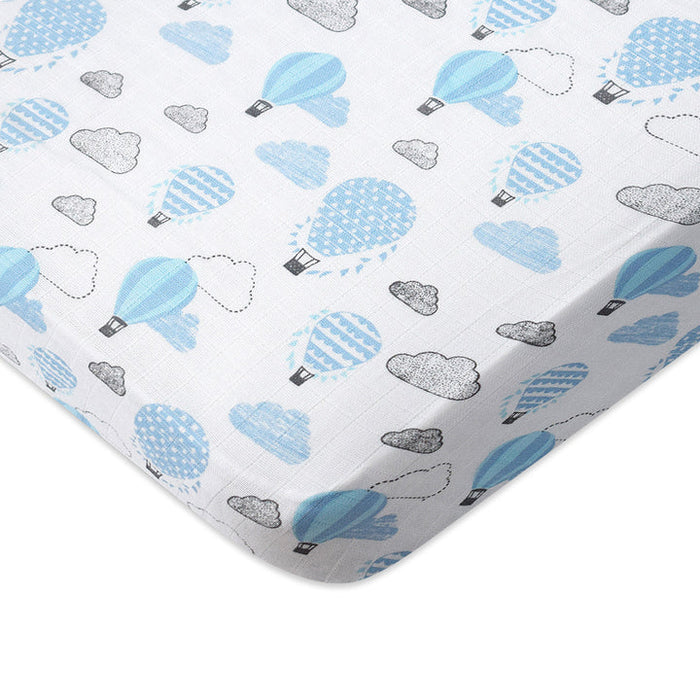 Organic Muslin Fitted Cot Sheet – Up, Up & Away (Blue)