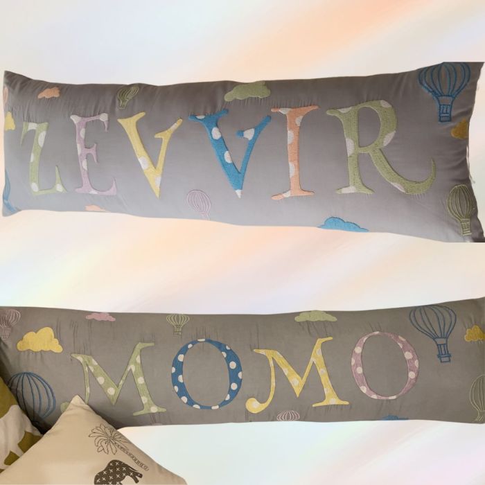Personalised Rectangle Name Pillow with Elements- Grey