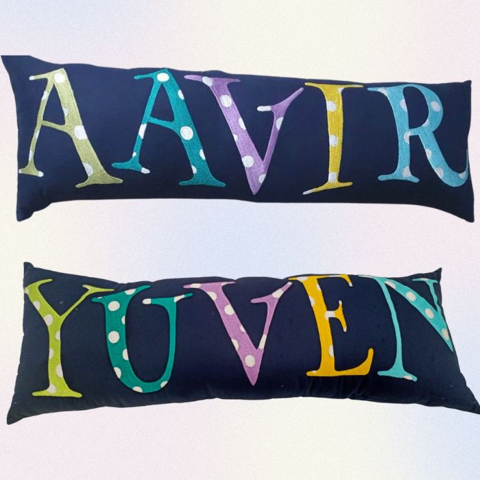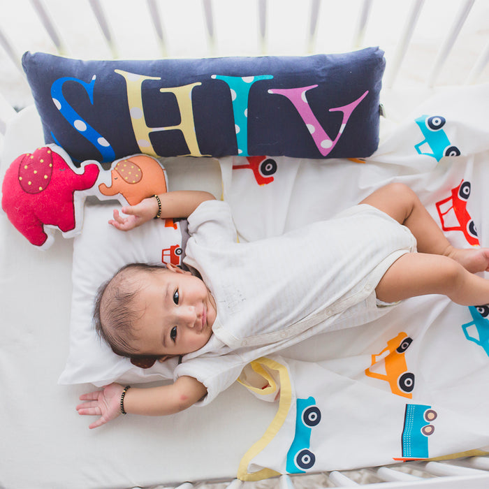 Plush, ultra-soft cuddle pillow with your little one's name embroidered on it. A personal space is really quite incomplete without one of these, and you can also double them as a bumper for the cot.