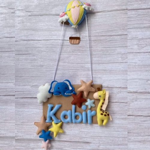 Elephant in a Hot Air Balloon Wall Hanging- Blue