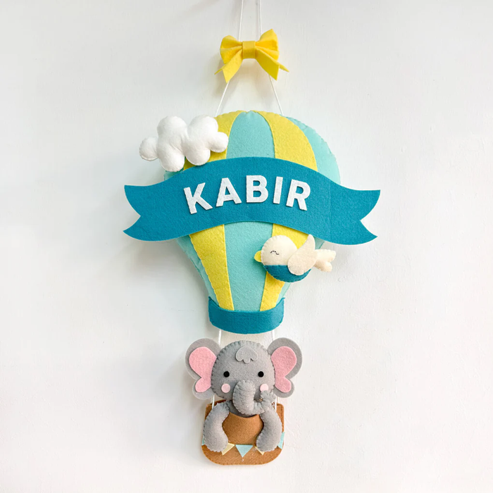 Elephant in a Hot Air Balloon Wall Hanging- Blue