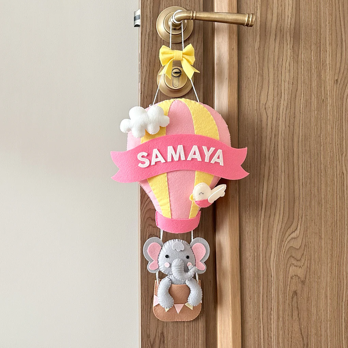 Elephant in a Hot Air Balloon Wall Hanging- Pink