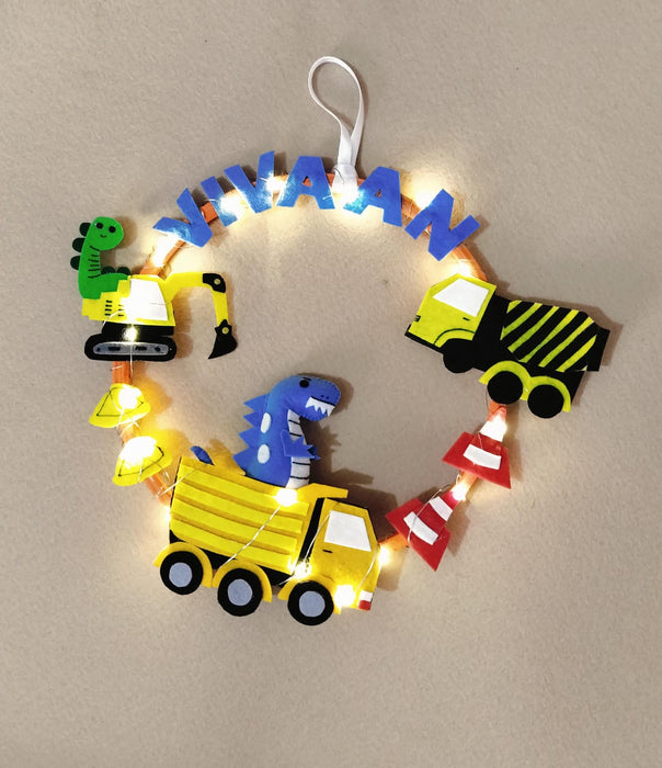 Dino-themed fun with a personal touch! A delightful mini hoop for kids with lights, adding a playful spin to their space, and can be personalized with their name.