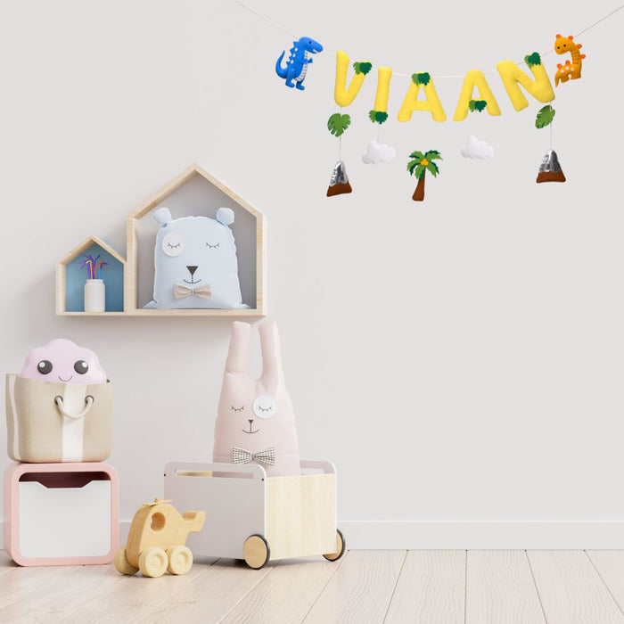 Personalized dino decor! Adorned with dinosaurs, it adds a playful touch to your child's space.