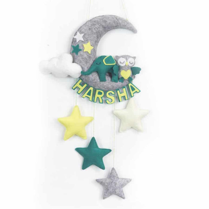An adorable handmade felt hanging for a baby nursery. lt can be a nice wall hanging or a cute door decor.