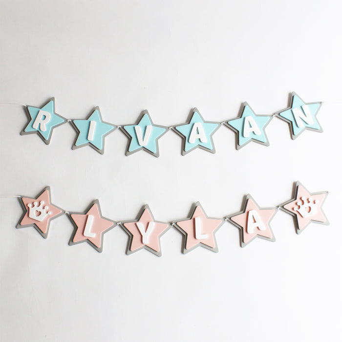 - If you wish to have only one star as a shape instead of a set of two, then please mention this under Additional Instructions. For eg- If the name is Aisha and you want one crown, then the total number of Stars you need to select is 6 and mention '1 star should be crown' under Additional Instructions)