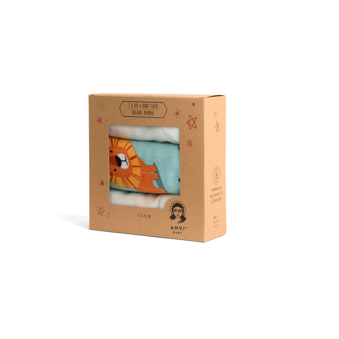 Organic Bamboo Burp & Bib Cloth - Lion Hearted - Set of 3