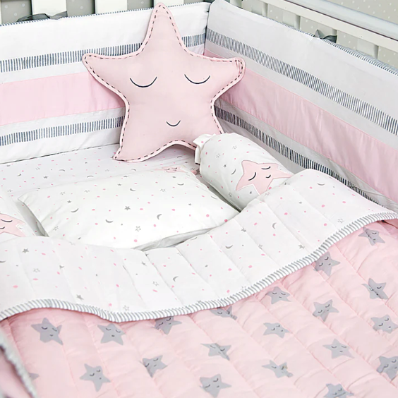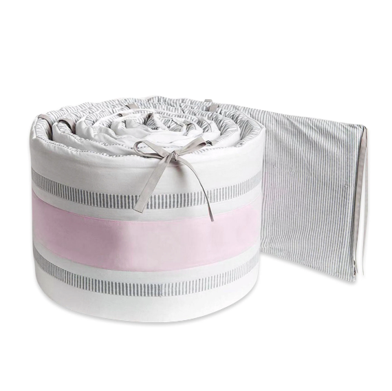 Cot Bumper with Removable Zip Cover - Pink/Stripe