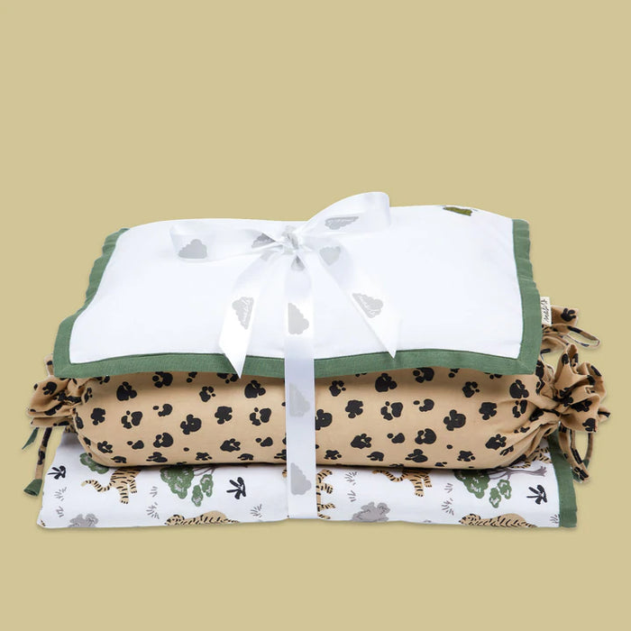 Welcome the little one home in grand style! This gift set features irresistibly soft sleep essentials made with organic cotton – just what every baby needs to drift off into dreamland!