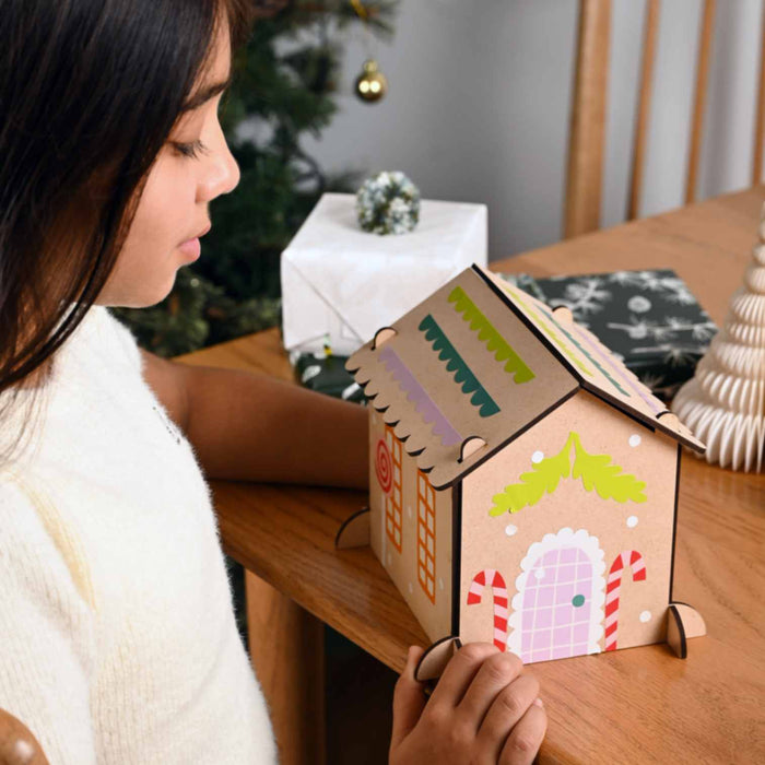 Decorate with stickers and assemble your very own 3D gingerbread house! This simple yet gorgeous activity can be done by one or multiple people. Using the stickers provided, decorate the pieces and then gently slide them together to build the 3D house! With perfect interlocking and sturdy materials, this gingerbread house will last you many seasons!
