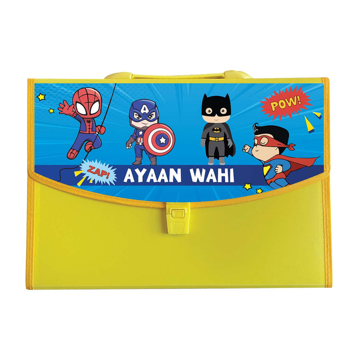 The folder can be personalised with text up to 20 characters. The size of the text box & font will be adjusted accordingly in order to maintain the best design aesthetic.