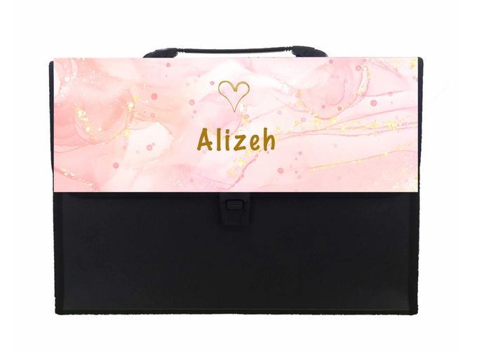 The folder can be personalised with text up to 20 characters. The size of the text box & font will be adjusted accordingly in order to maintain the best design aesthetic.