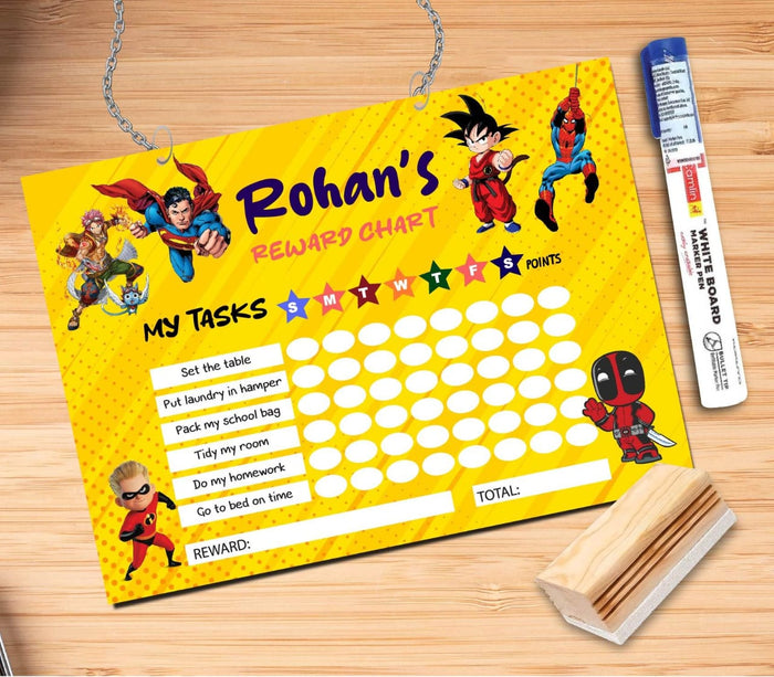Empower your little one with our reward charts! A great way to encourage good behaviour and motivate them to independently complete certain tasks. The reward chart comes with a duster and marker to write, erase and reuse.