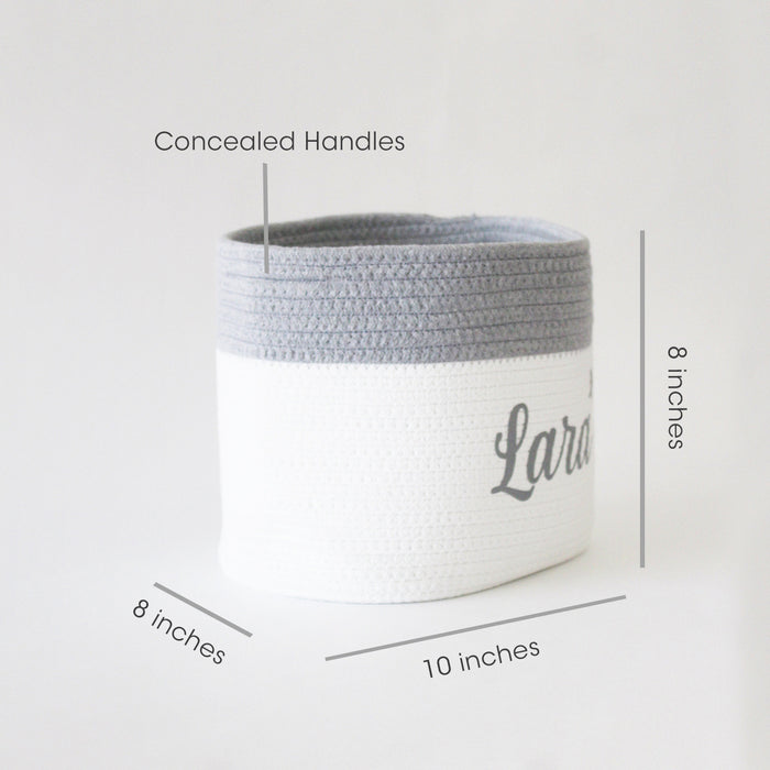 4. Personalization: The personalized name will have some texture on them since the basket itself is textured and not smooth. The name will be on one side only. The other side will be plain.