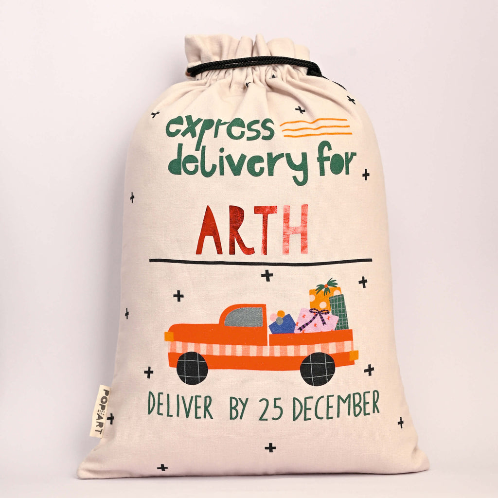 Our personalised Christmas gift sacks typically take 5-12 business days to be processed and shipped. If you need your sack sooner, please contact us to discuss expedited shipping options.