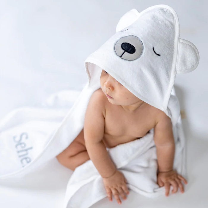 Splash into bath time with a plush and absorbent hooded towel. Featuring printed bamboo muslin on the outside and ultra-soft terry cloth on the inside, plus a hood for keeping your little one cozy!