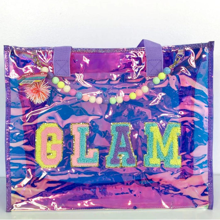Introducing this purple multipurpose and versatile holographic finish tote bag that is useful for beach trips, shopping or even as a stylish accessory with any outfit. It comes with sturdy handles that make it easy and comfortable to carry, even when it's fully loaded.