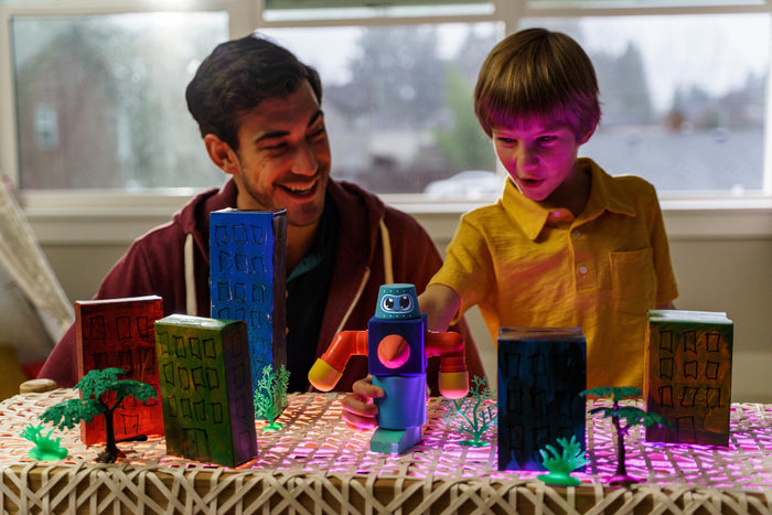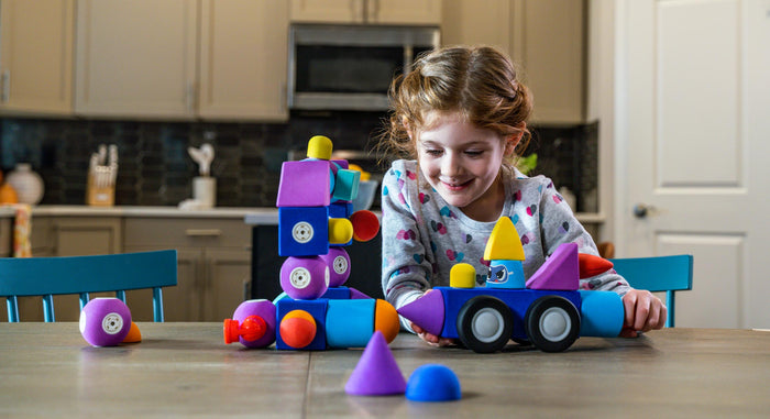 - Addictive clicking sound is emitted when blocks are rotated creating a “fidget toy” sensation.