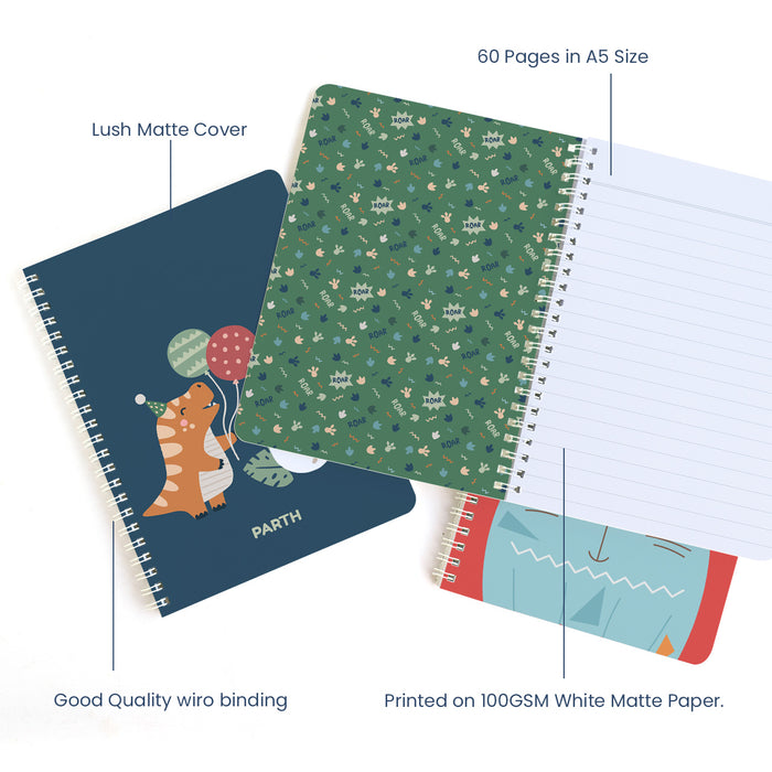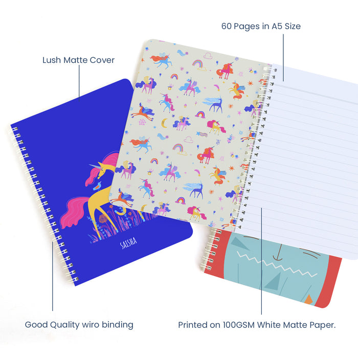 How excited will your kids be if their notebook had their favourite theme & their name on the cover page? Pick from dotted, ruled or plain pages & enjoy this customised Spiral bound Notebook! Let them indulge in creative writing, journaling, doodling, making study timetables & more.