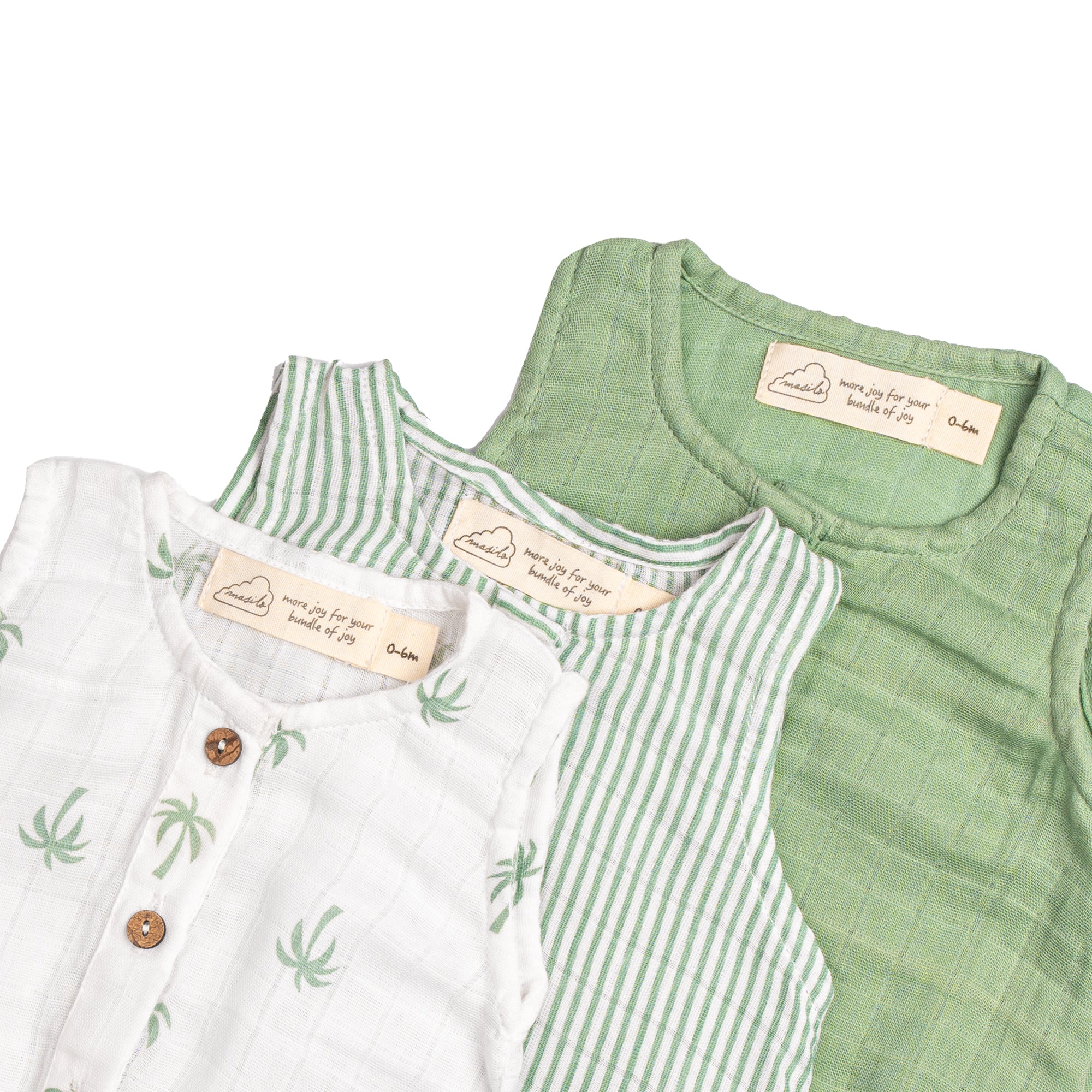 Organic Muslin Baby Romper (Pack of 3) – Palm