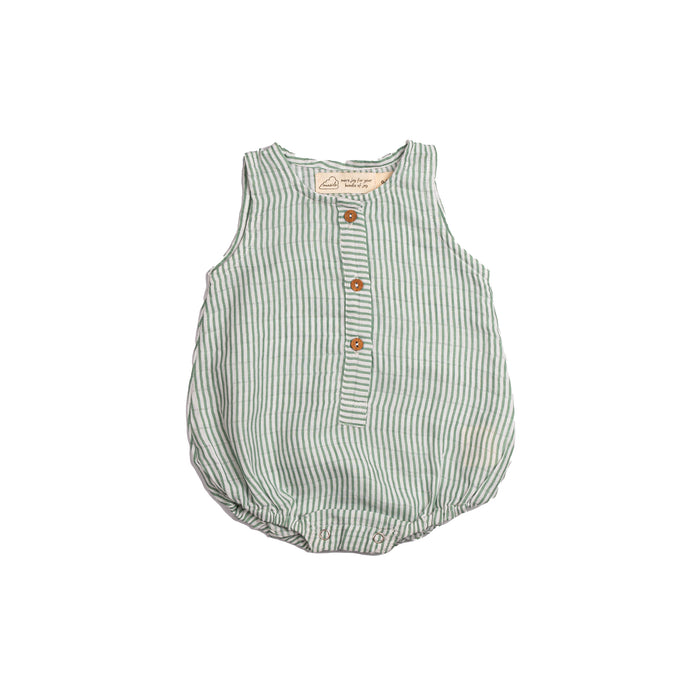 Our soft muslin romper is perfect for babies. Made from 100% organic cotton, it's breathable and comfy! Keeping your baby's delicate neck in mind, this piece features an extra long front opening so it's easy to put on your baby. What's not to love?