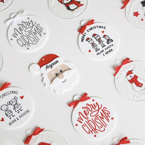 Our personalized Christmas ornaments will look adorable on your Christmas Tree.