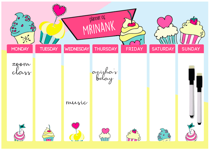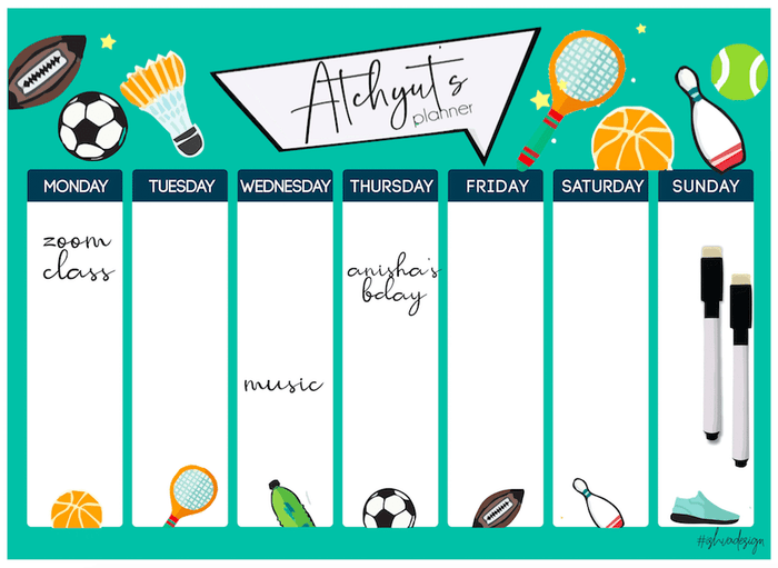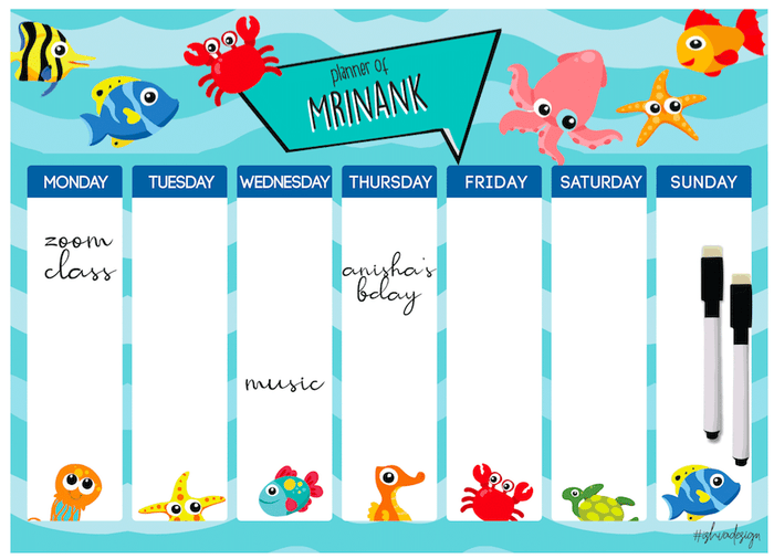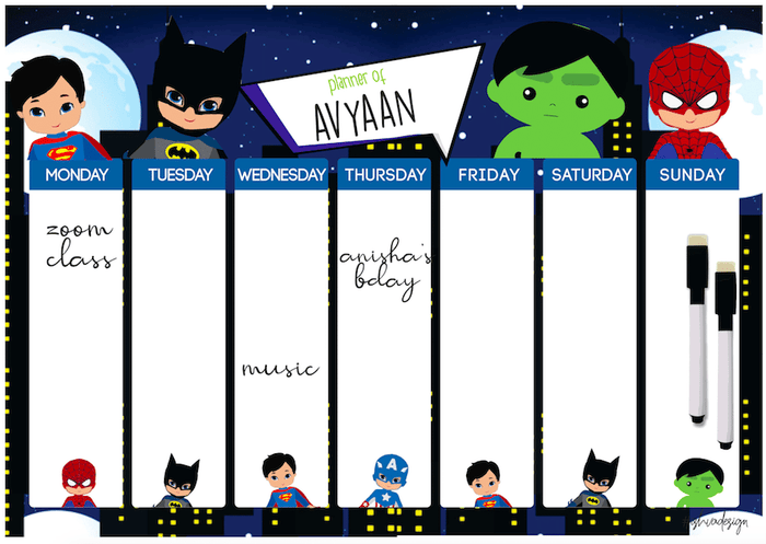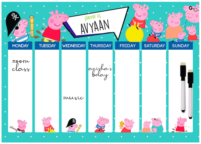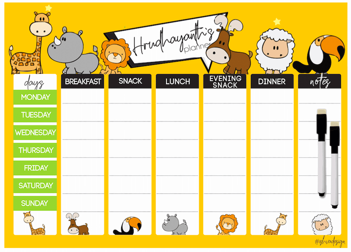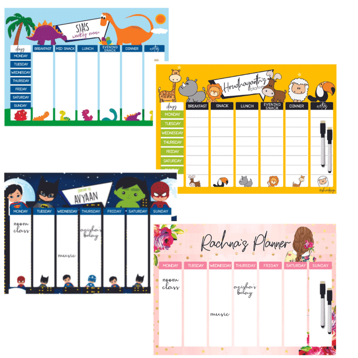 A4 size Magnetic Weekly / Meal Planner- Boys & Girls