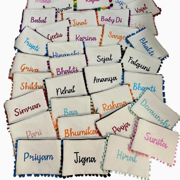 These adorable canvas pouches are great to store your child's small essentials. It can be personalised with their name and pom poms in their favourite colour!