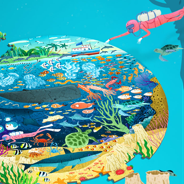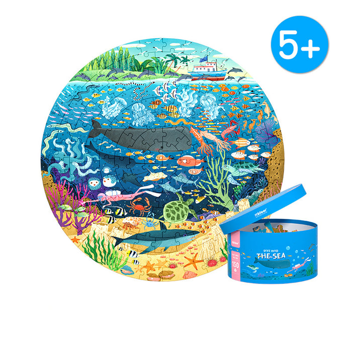 A circular puzzle encourages kids to think out of the box. Let your children’s imagination take flight with the Mideer Dive Into The Sea - Circular Puzzle where you take a ride in the sea and your child can imagine being a diver. Each piece is extra thick, 2.5mm, making them durable and easy to handle for kids of all ages. Includes a 150-piece puzzle that will result in a round floor puzzle. It comes in a beautiful cylindrical box for gifting and easy storage.