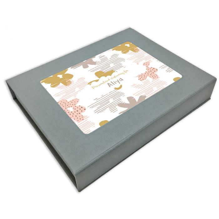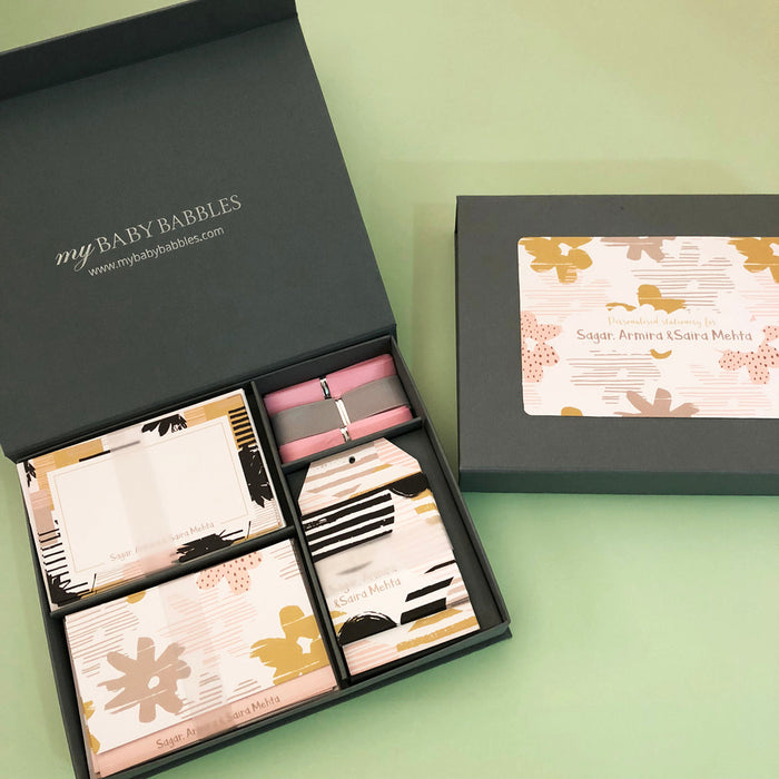 Luxury, personalised stationery for all your gifting needs. Get this high quality stationery set with personalized tags, personalized cards, envelopes and a ribbon. The set comes in a signature gift box, making it a perfect present!