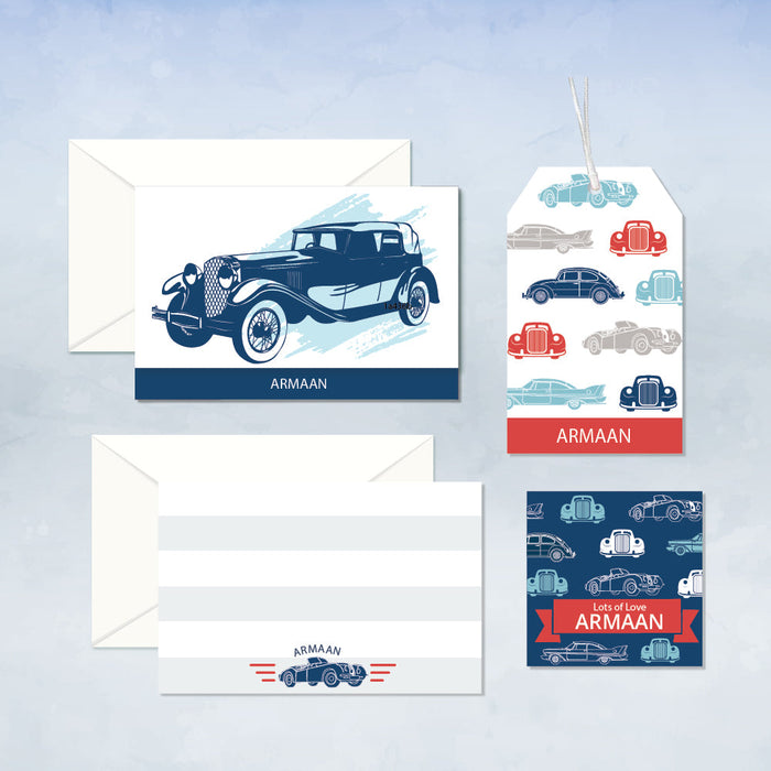 Luxury, personalised stationery for all your gifting needs. Get this high quality stationery set with personalized tags, personalized cards, envelopes and a ribbon. The set comes in a signature gift box, making it a perfect present!