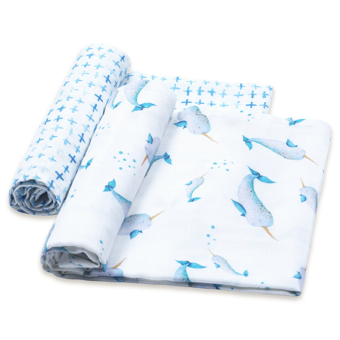 Masilo Bamboo Muslin Swaddles (Set of 2) - Nautical Narwhal